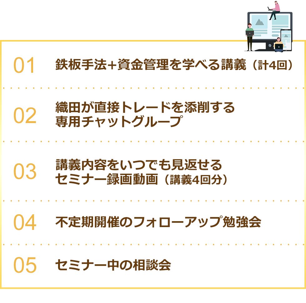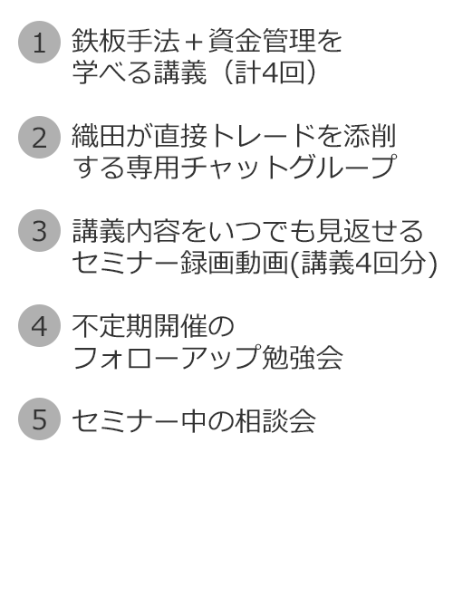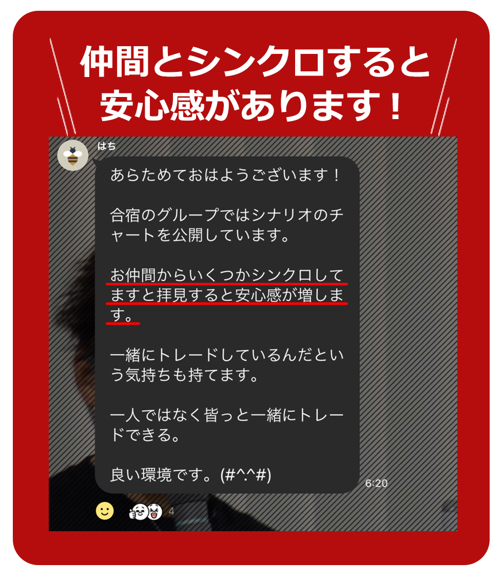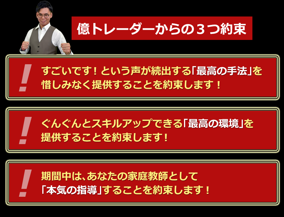 つまり、合宿が終わった後も、億トレーダーのマンツーマン指導を永久に受けられるということです。