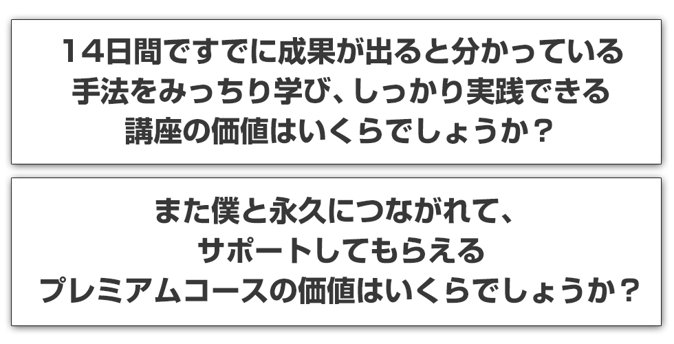 1括であれば、スペシャル個別LINEでいつでも質問ができるサービスがついて、たった440,000円。しかも永久に僕に質問し放題!