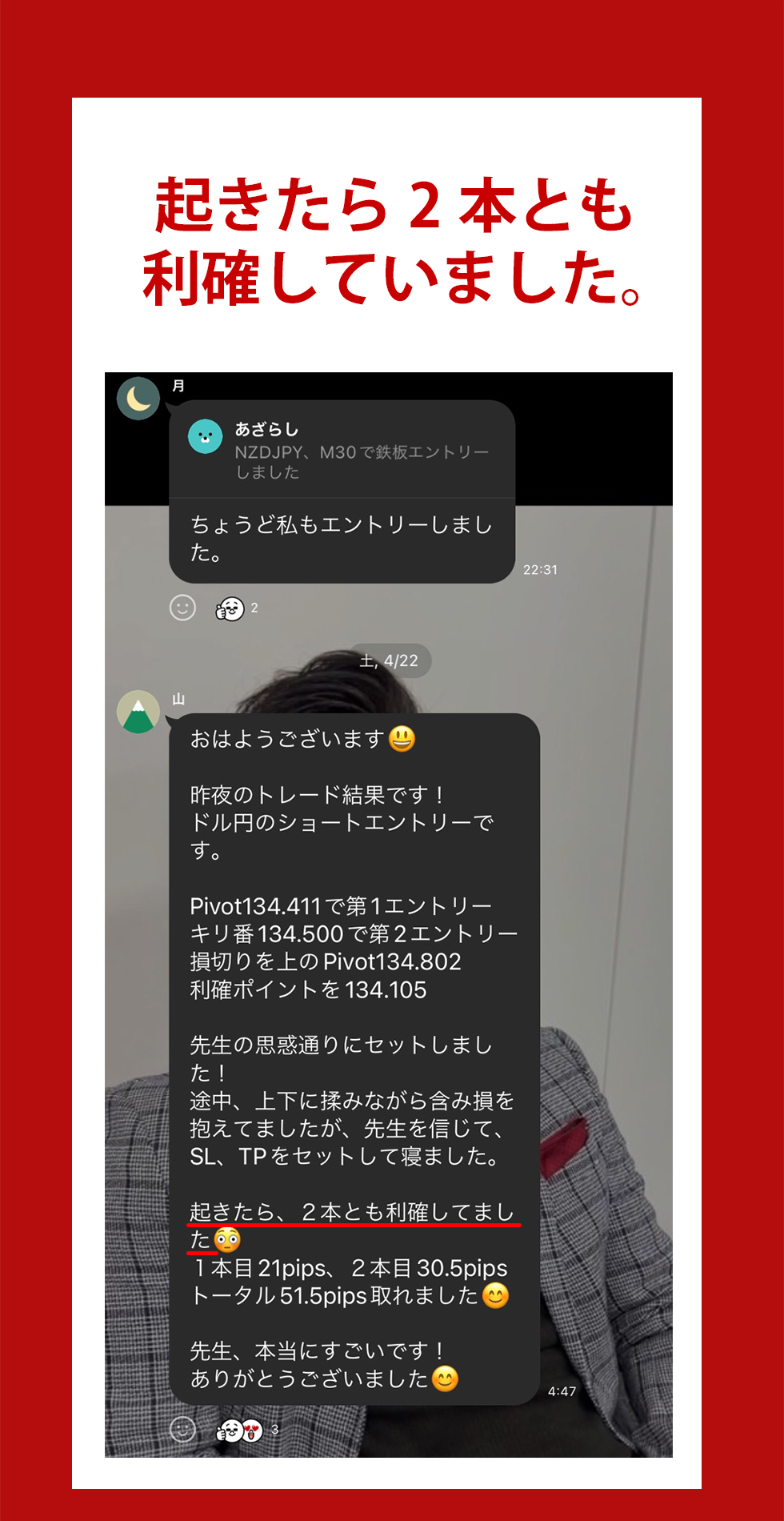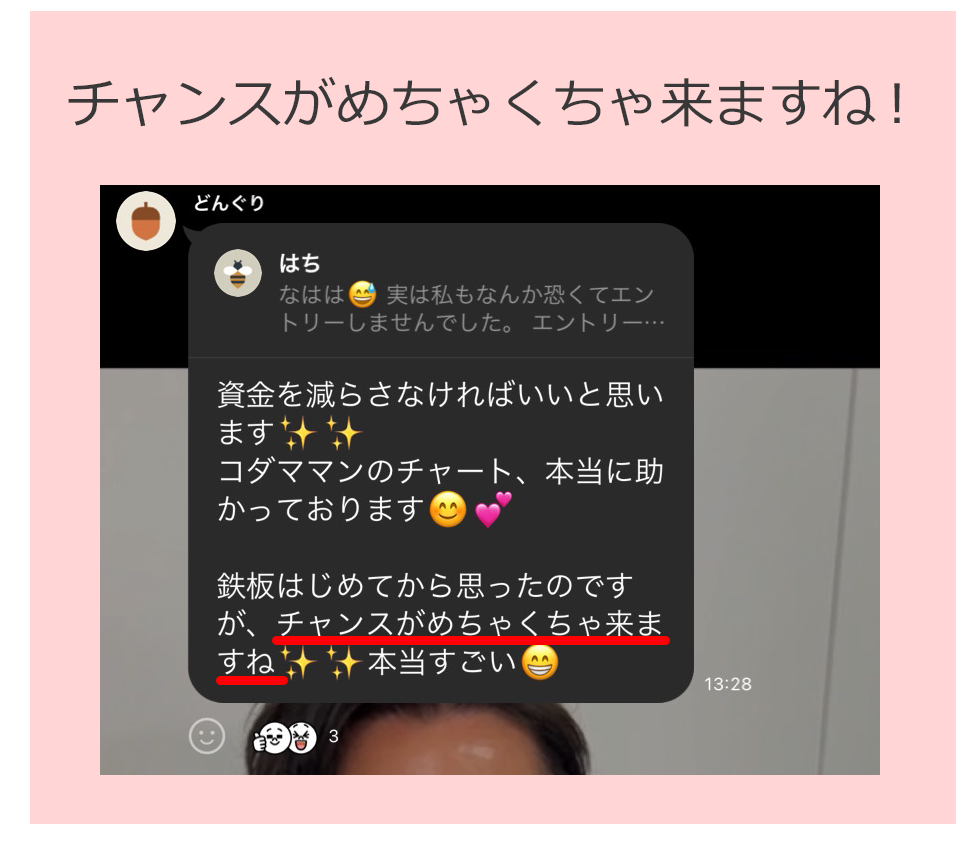 参加後も「いま分娩室でトレードしています」というなかなか衝撃的なこともありましたが、Yさん自身が目標に向かって頑張ってくれた結果…
