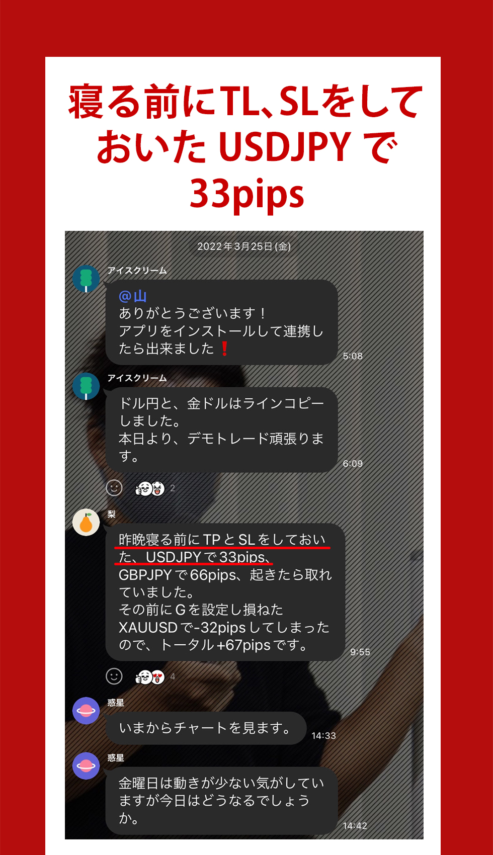 また、その他にも、メンバーさんのトレードなども見れるので、自分のトレードを見比べて足りないところに気が付くこともあります。