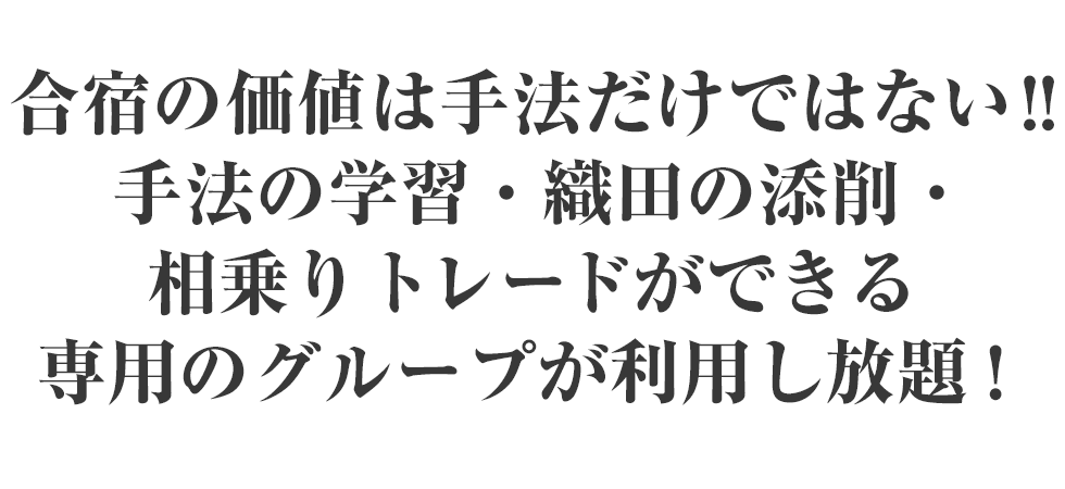 もし、いまの合宿メンバーのようにイエローライン以外でも利益を出したければ、この合宿に参加することを強くおススメします。